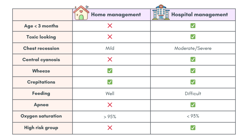 - Tachypnoea ± chest recession (or both) AND