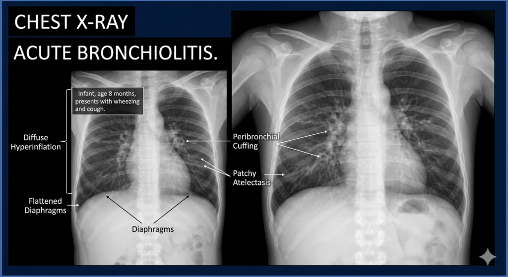Bronchiolitis is primarily a clinical diagnosis, but several conditions can mimic its presentation. Key alternative diagnoses to consider include: