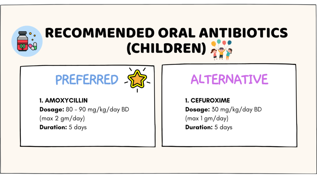 • Amoxicillin 500 mg TDS x 5 – 7 days OR