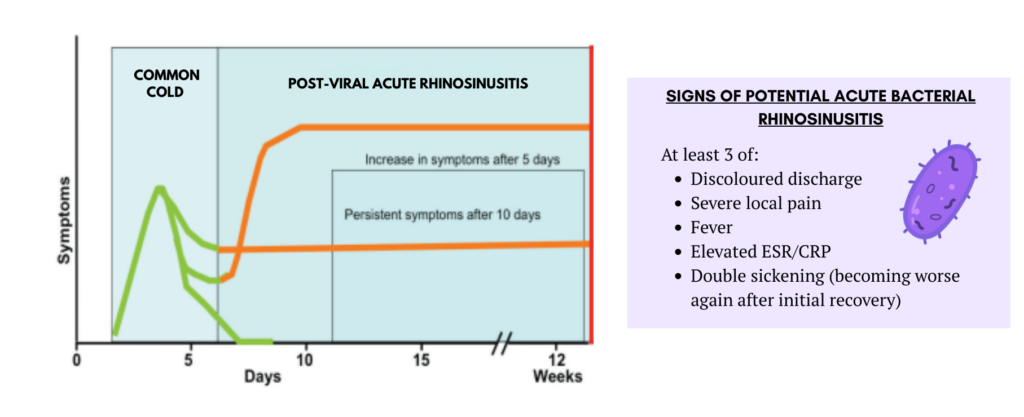 – Deterioration of SSx after recovering (‘Double Sickening’): patient often report having a cold that was getting better but then they started feeling worse again.