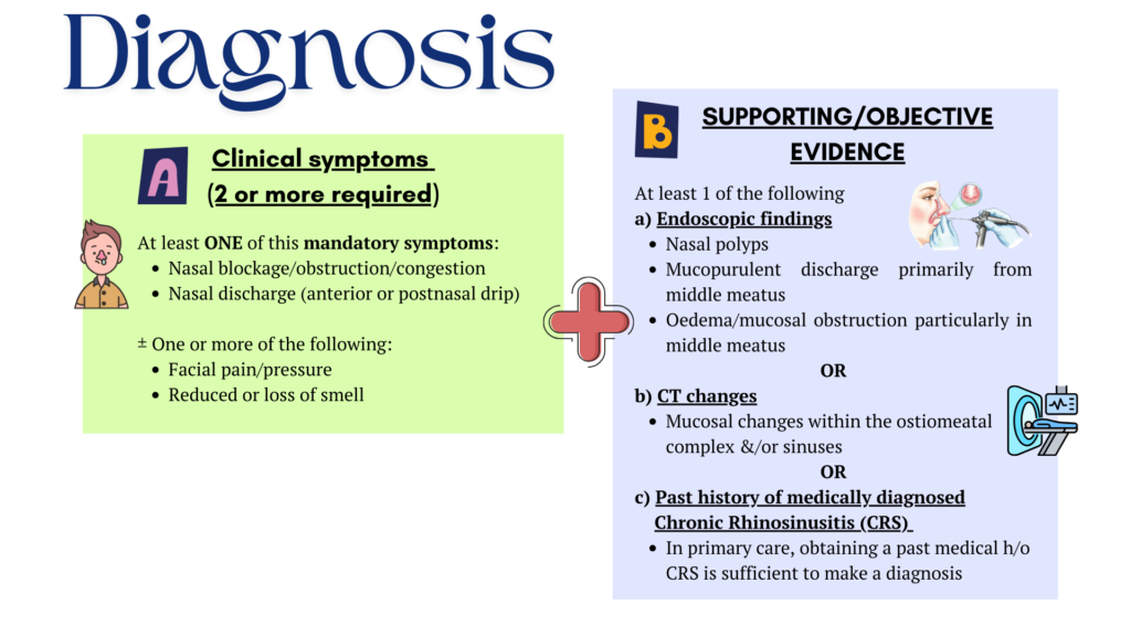 b) Chronic rhinosinusitis(CRS): When symptoms last > 12 weeks.