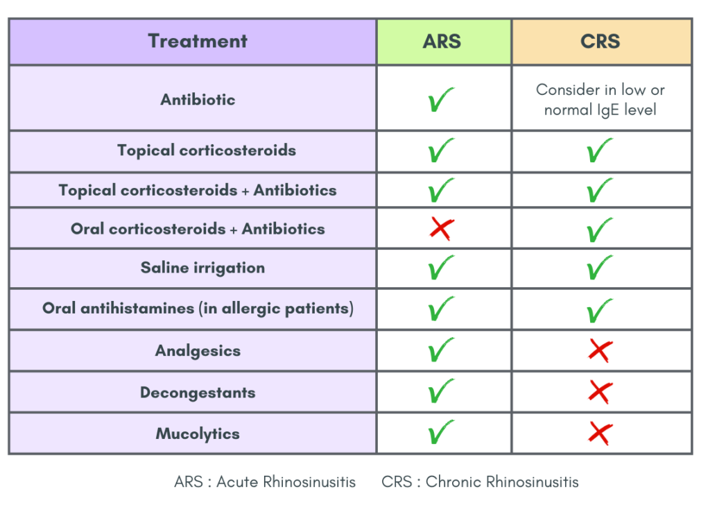 • Post viral ARS : increased in symptoms after 5 days, or persistence of symptoms after 10 days.