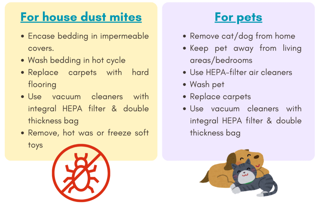 - Animal allergen avoidance at home may help, though exposure in public spaces remains unavoidable.