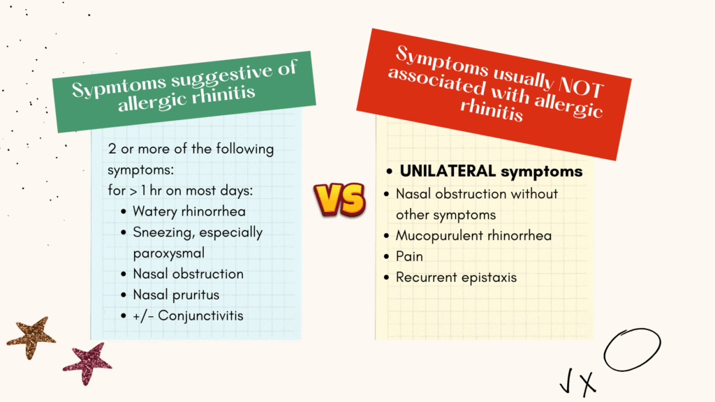 - Diagnosis of allergic rhinitis – typical history + diagnostic tests