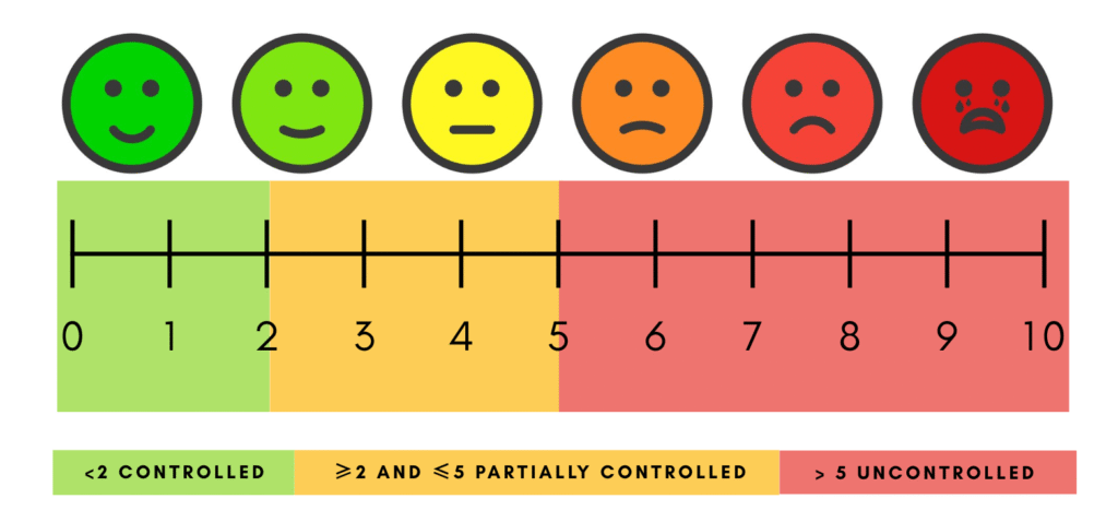 This can be done using either the ARIA classification or the Visual Analogue Score (VAS)