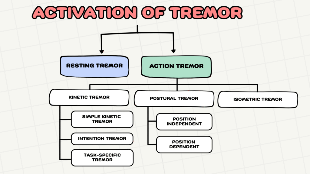 Tremors may be characterized based on its activation pattern, topographical distribution and frequency. Of these, characterization based on activation pattern, supplemented by topographical distribution is a practical approach in clinical settings.
