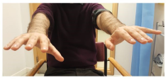 Lastly, assess for any tremor in the wing-beating position as below