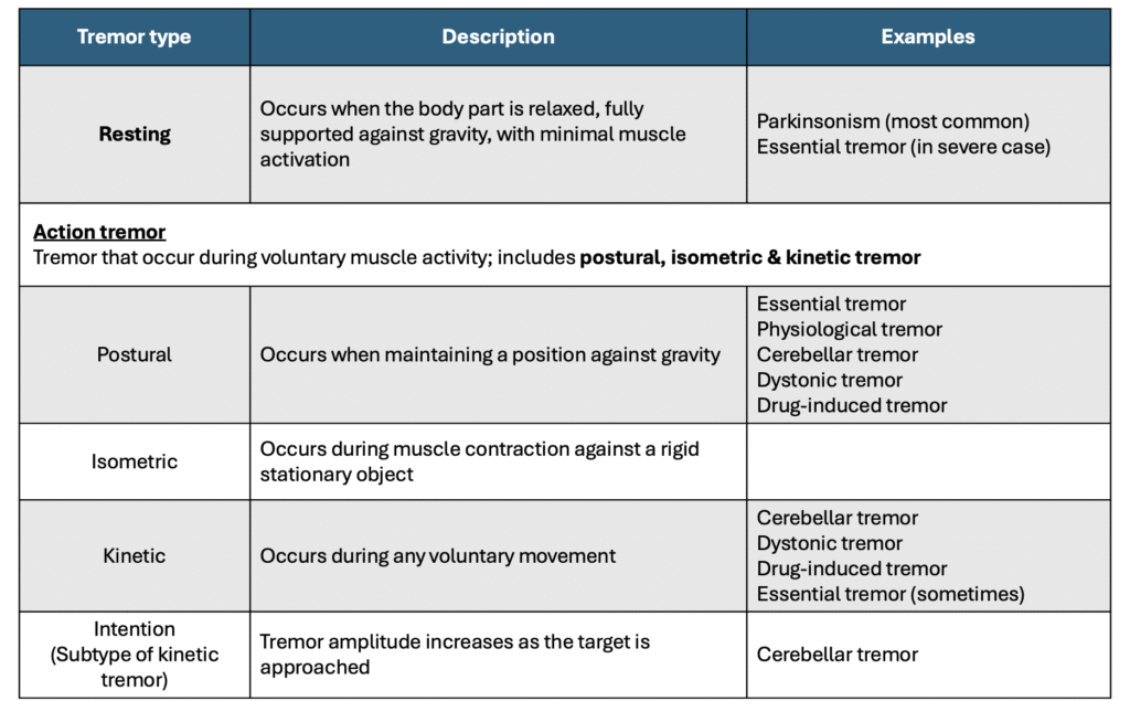 3. Vijiaratnam, N., Wirth, T., & Morris, H. R. (2020). Revisiting the assessment of tremor: clinical review. The British journal of general practice : the journal of the Royal College of General Practitioners70(701), 611–614. https://doi.org/10.3399/bjgp20X713849