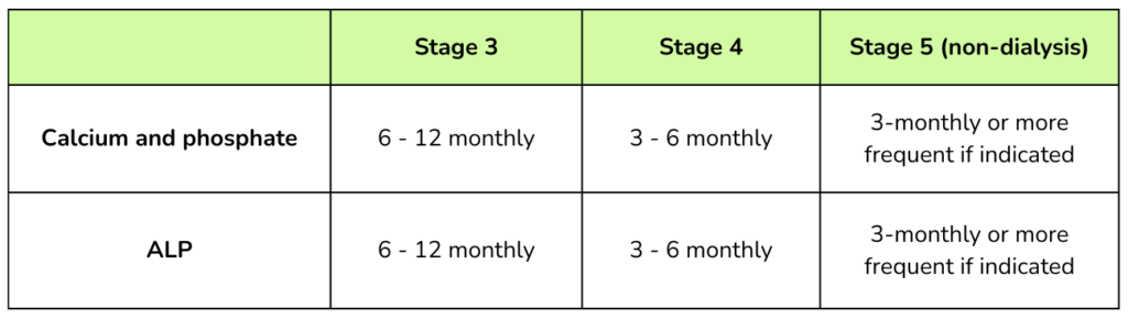 • Screening for CKD-MBD should be done when eGFR < 45.
