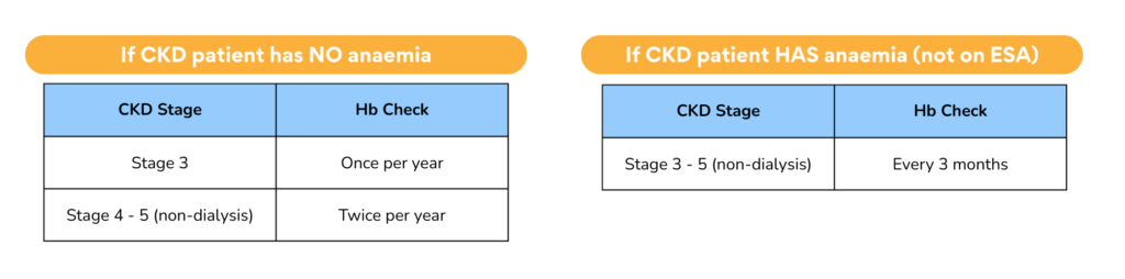 • Screening for anemia should be done when eGFR < 60.