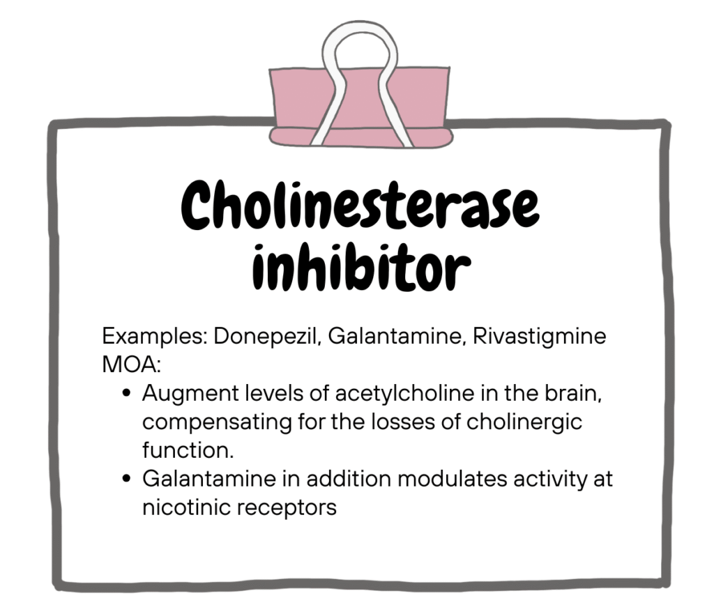 Keep in mind that these pharmacological treatment are not curative, but rather aimed at managing symptoms (cognitive, non-cognitive & behavioural), improve independence & preserve function.