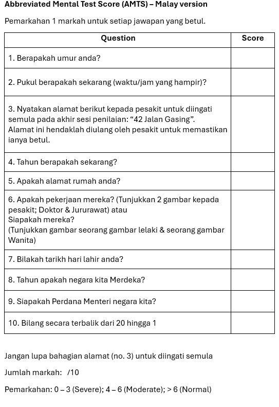 Abbreviated Mental Test Score (AMTS)