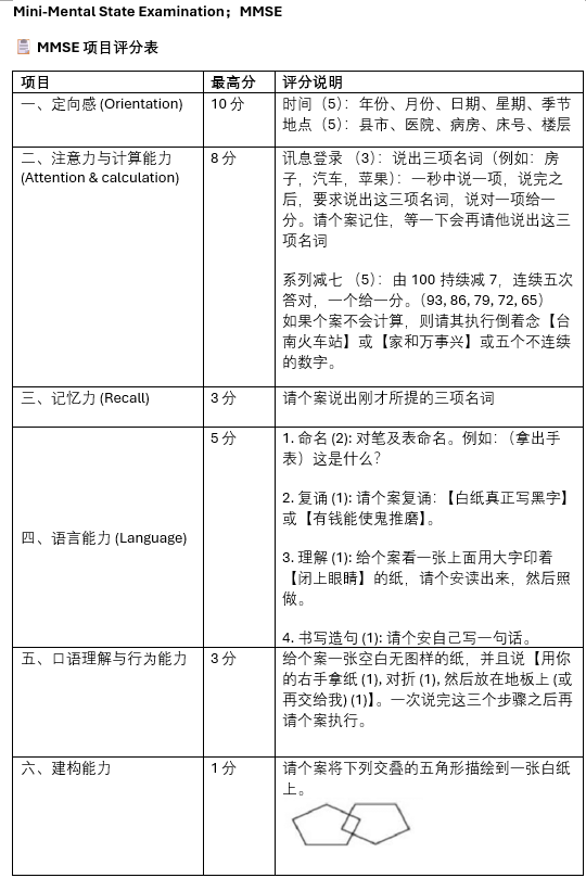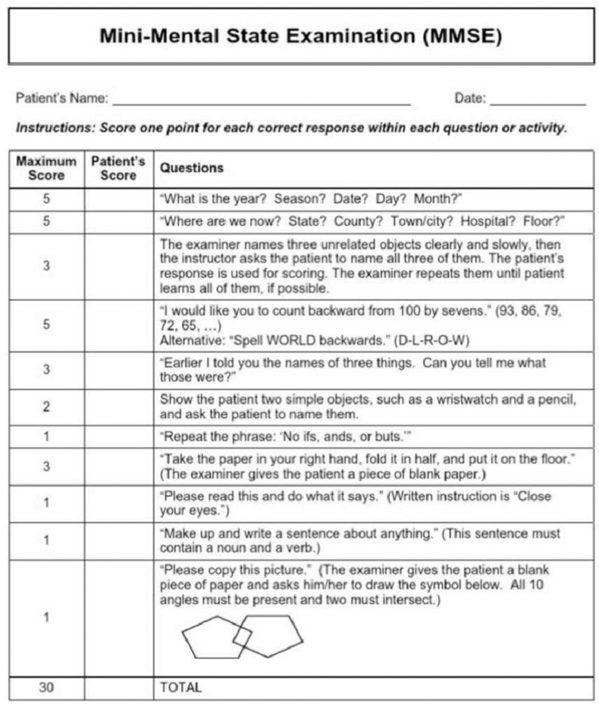 Mini Mental Score Examination (MMSE)