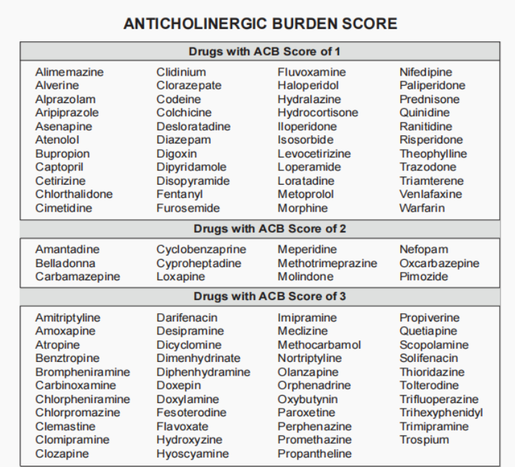 In patient with cognitive impairment, we should be cautious in prescribing medications with anticholinergic properties to avoid worsening of their symptoms.