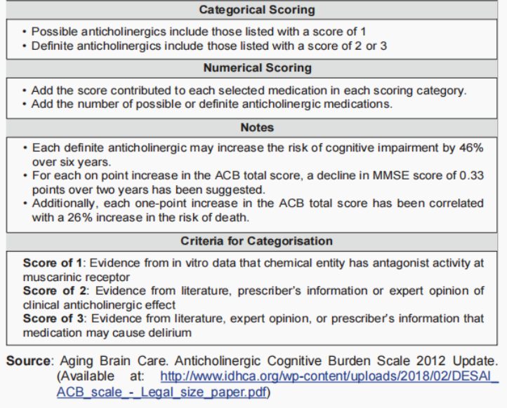 Below are medications with their anticholinergic burden score as listed in our Malaysia CPG guideline.