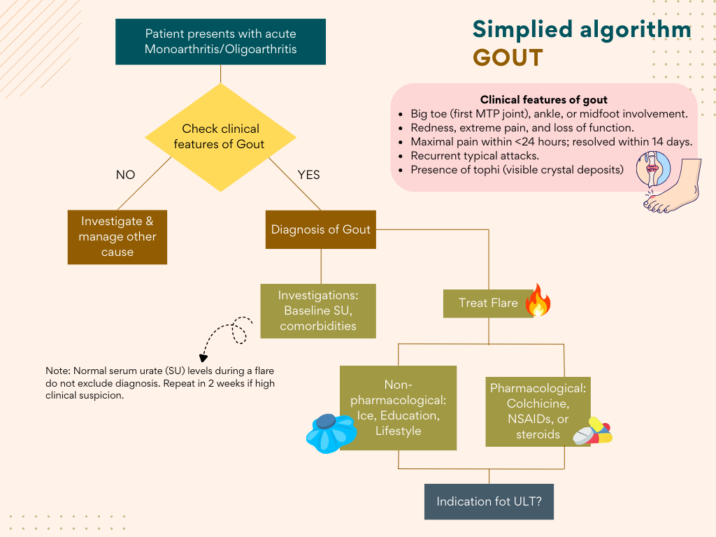 Ministry of Health Malaysia. (2021). Clinical practice guidelines: Management of gout. Putrajaya: Ministry of Health Malaysia.