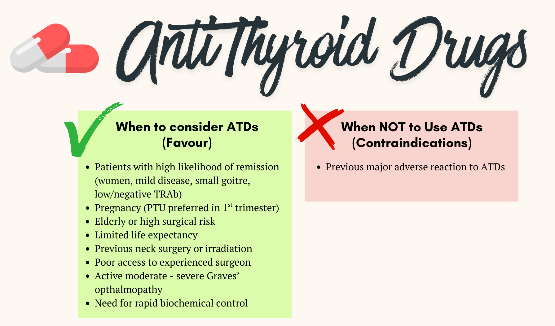 If surgery is chose as treatment for GD, pt should be rendered euthyroid prior to the procedure with ATD pretreatment ± β-blockade.