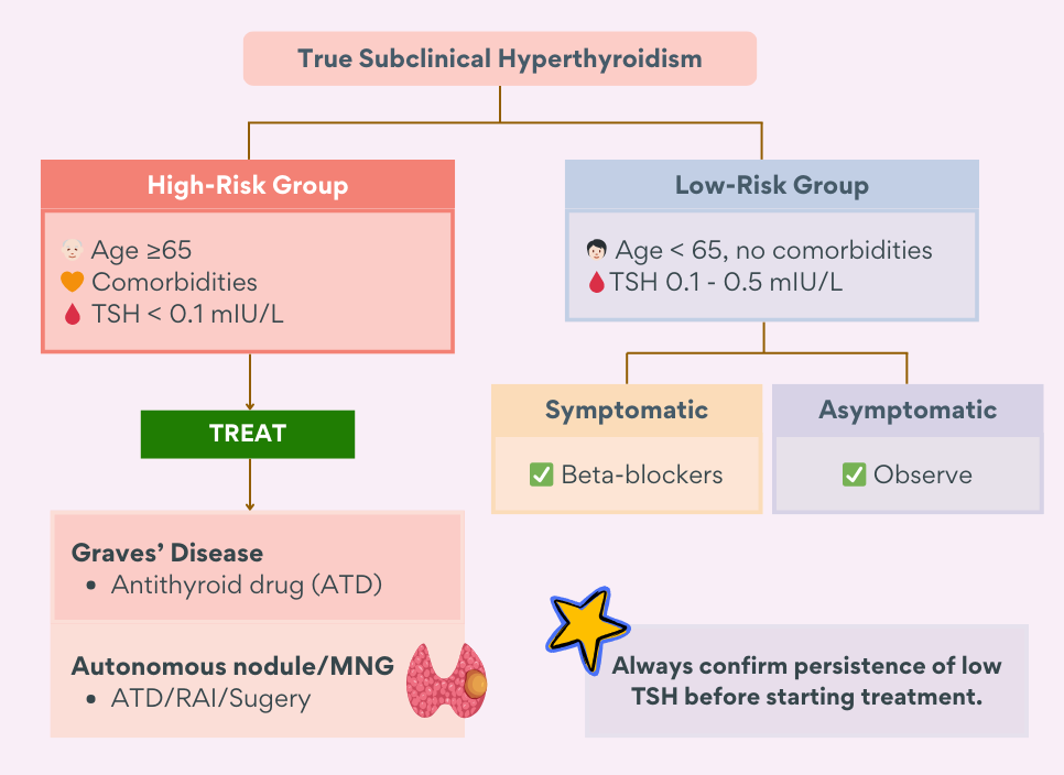 β-blockers should be instituted in patients with subclinical hyperthyroidism.