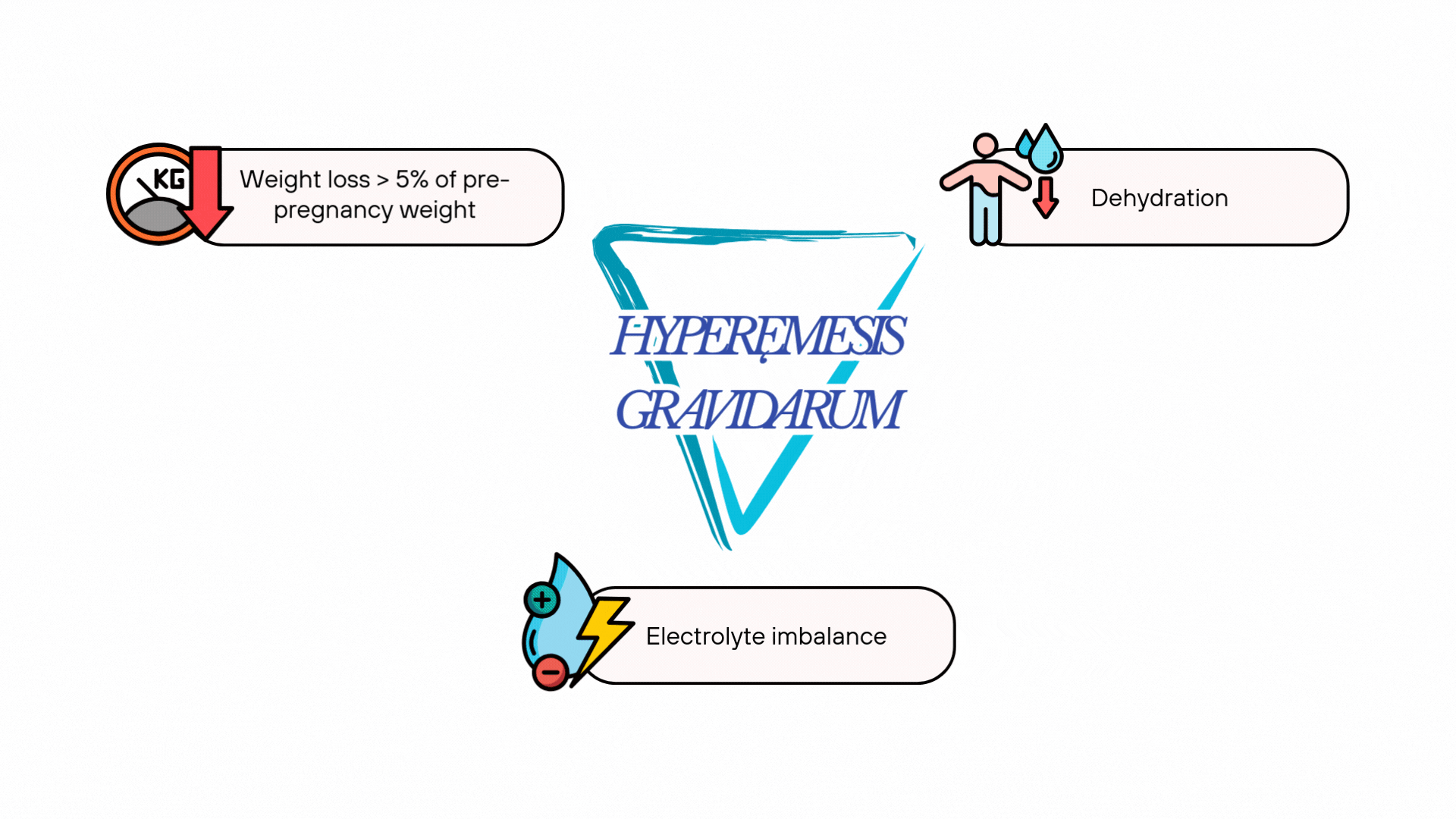 - Generally HG is diagnosed when it is associated with triads of – Weight loss > 5% of pre-pregnancy weight, dehydration, & electrolyte imbalance.
