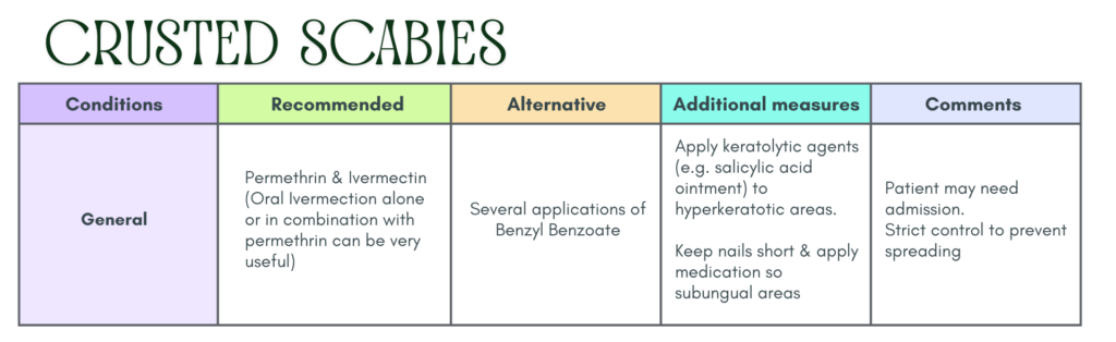 - Allergic contact dermatitis to scabicides should be excluded.